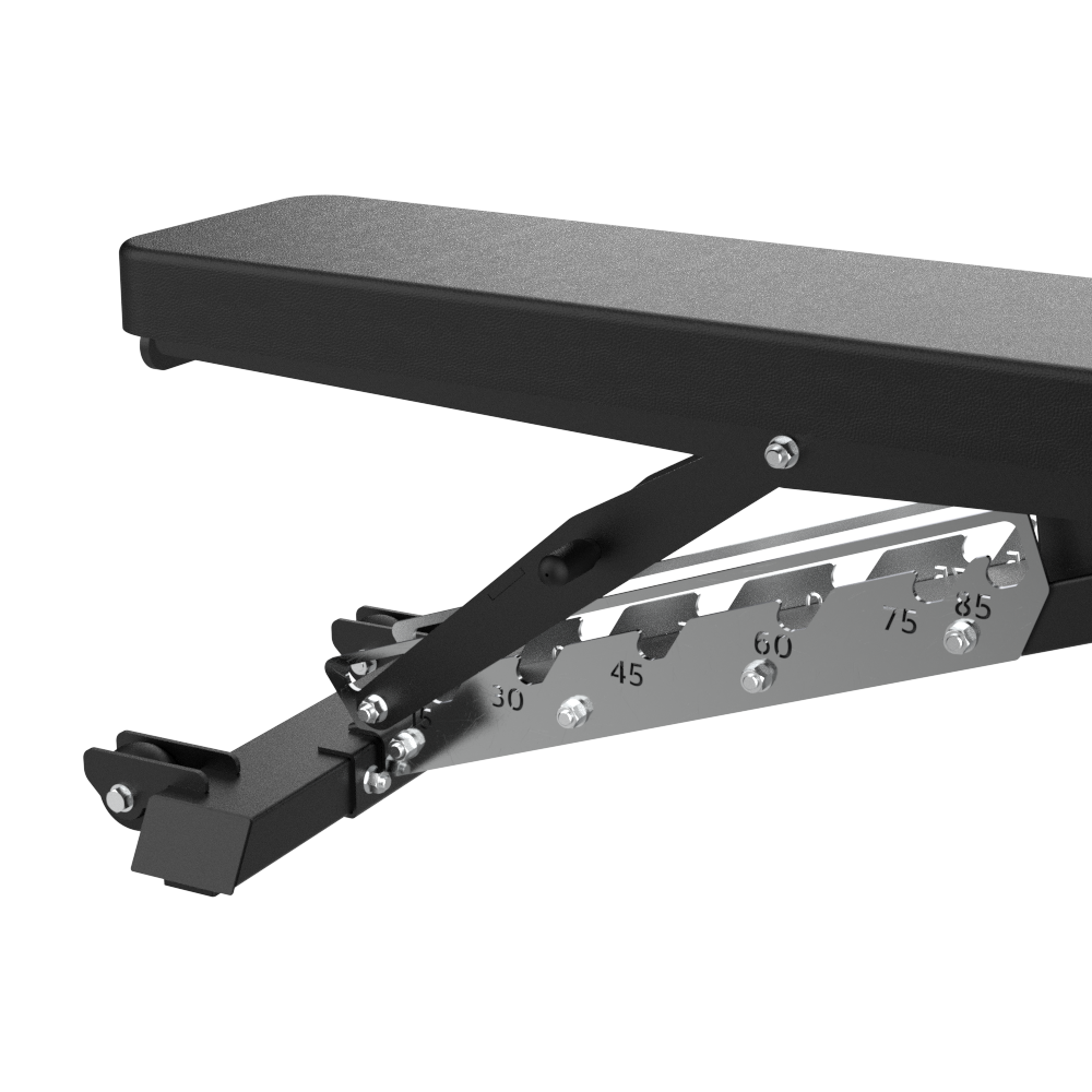 其8檔可調靠背(-10°至85°)支援從下斜胸推到直立肩推的各種推舉角度,滿足不同的訓練目標。寬大的高回彈靠墊提供穩定的軀幹支撐,確保安全性和舒適性。 3檔可調座椅(0°至30°)可與不同軀幹角度的骨盆中立位置保持一致,幫助使用者找到最佳槓桿作用,同時減少下背部壓力,提高安全性和訓練效果。創新的快速調整靠背設計支援單手精準調節角度,實現升降動作,而堅固的支撐框架則確保了穩定性。每個位置清晰的角度標記進一步提升了易用性。