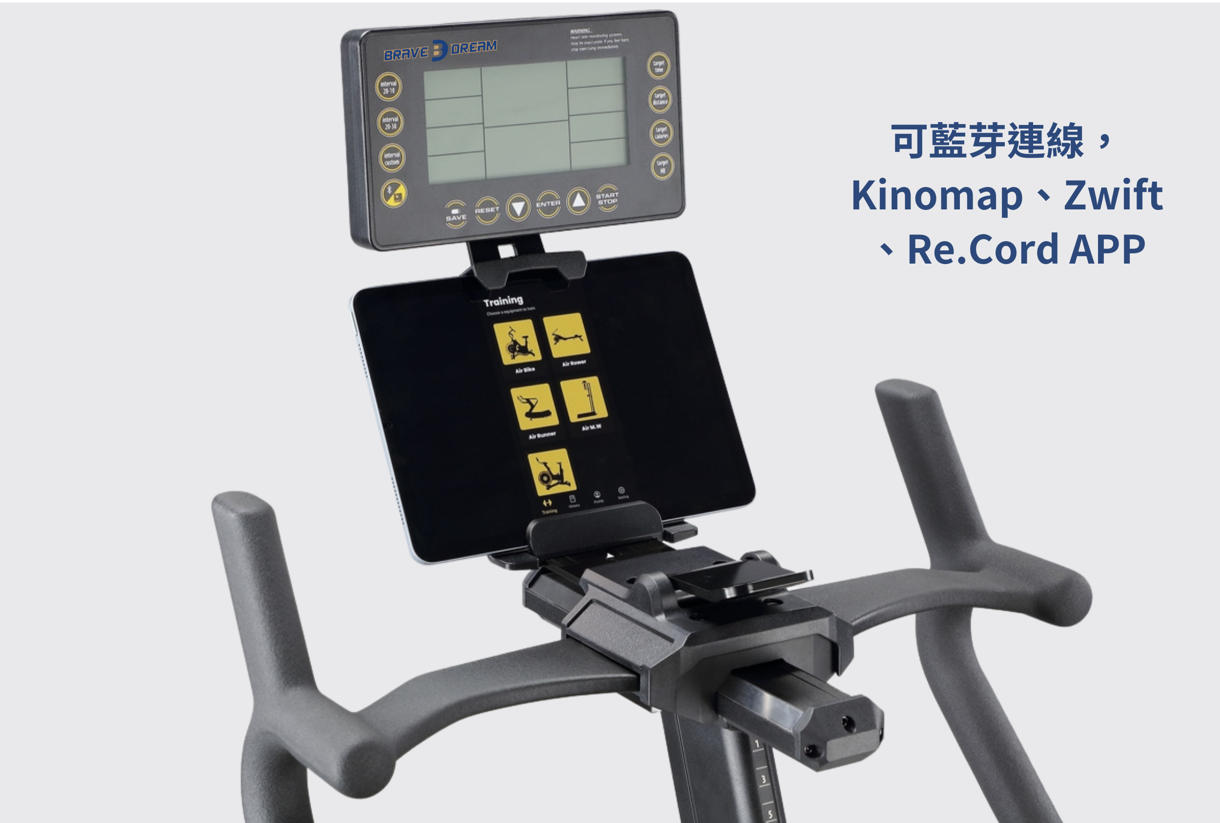 ● 可藍芽連線,Kinomap、Zwift 、Re.Cord APP